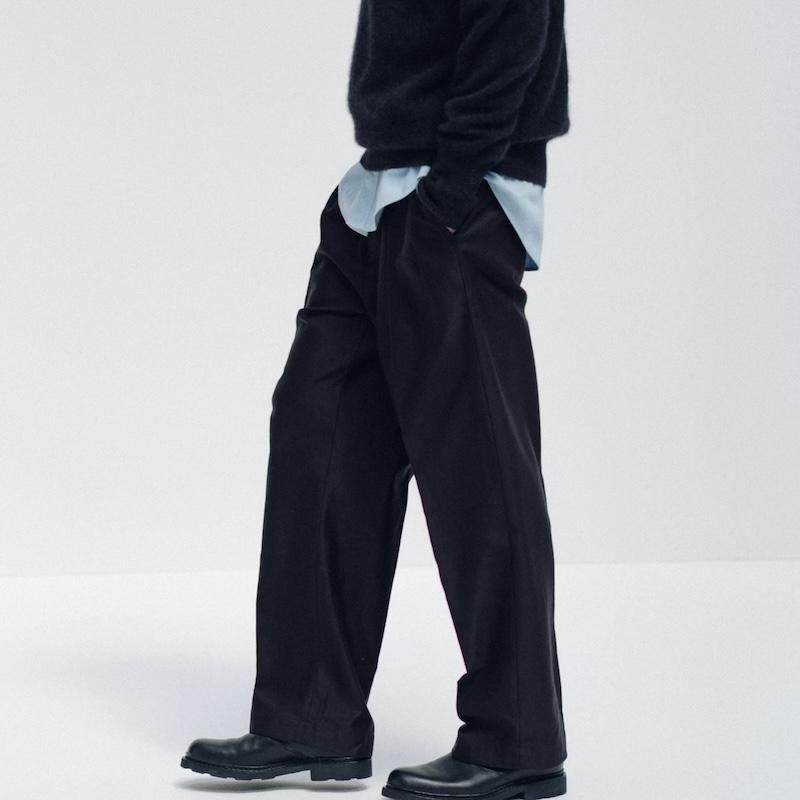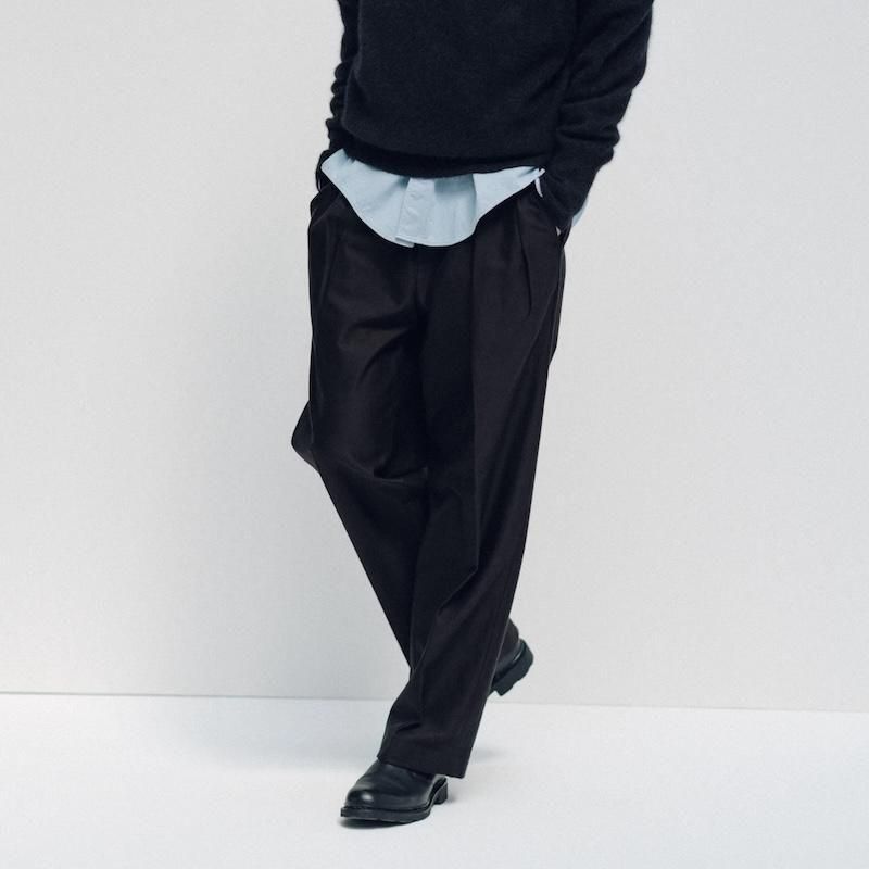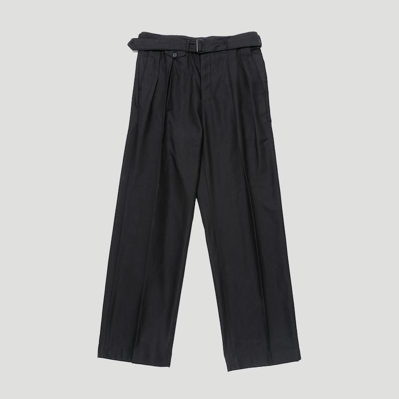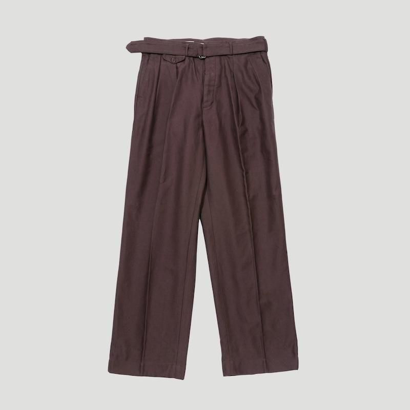 INTERIM / MILITARY WOOL SERGE 1 TUCK FRENCH ARMY WIDE TAPERED TROUSER