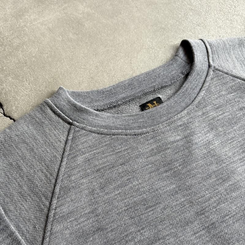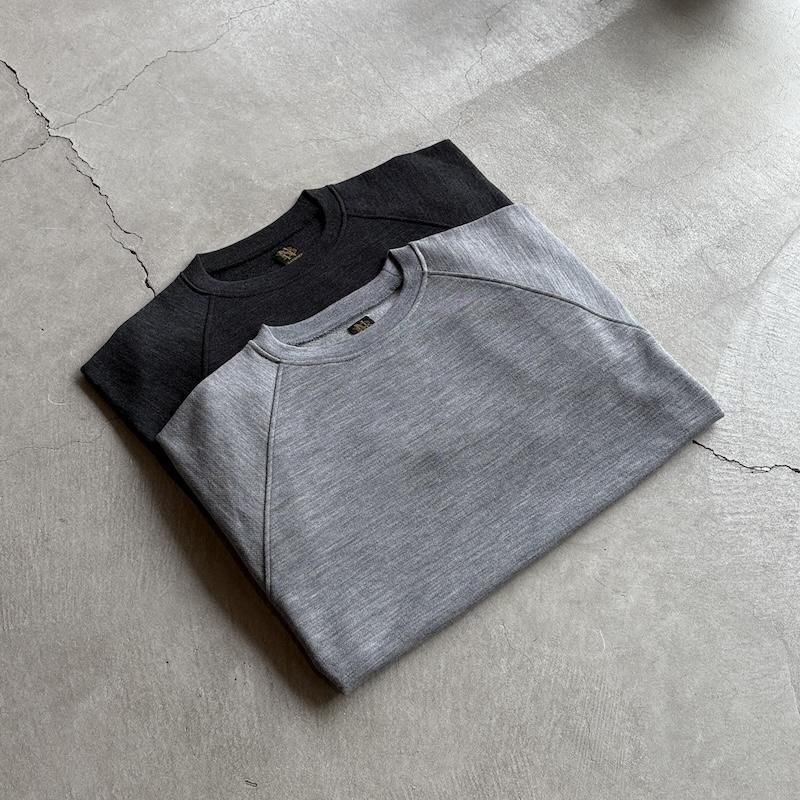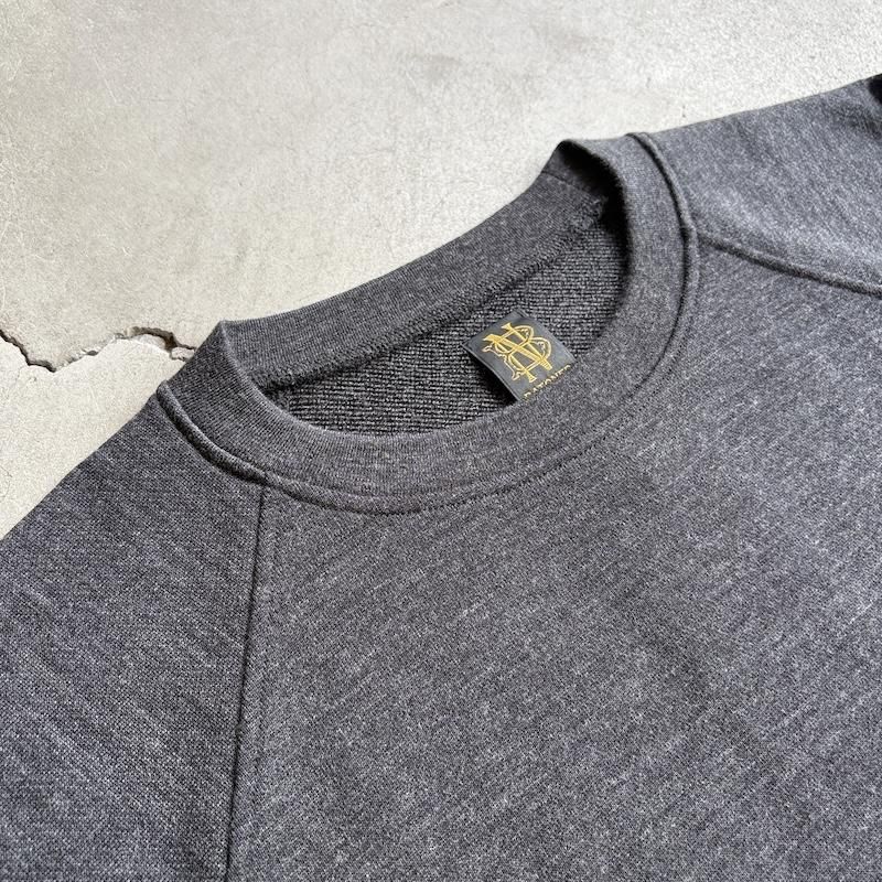 希少なキャラクターを持つハイマイクロン梳毛のメリノウールを表、中糸、裏糸全てに使用した裏毛生地シリーズ。いわゆるスウェットですがこのメリノウールで構成された裏毛が持つ特有の光沢感、ドレープ感、肌触りが際立つ商品です。