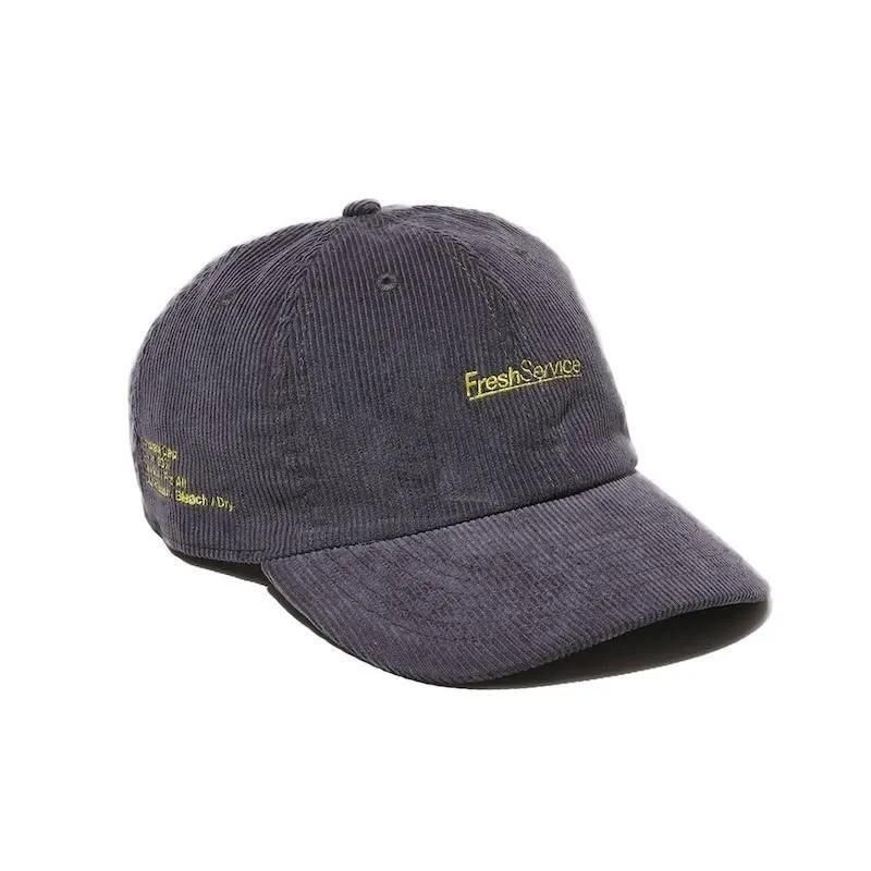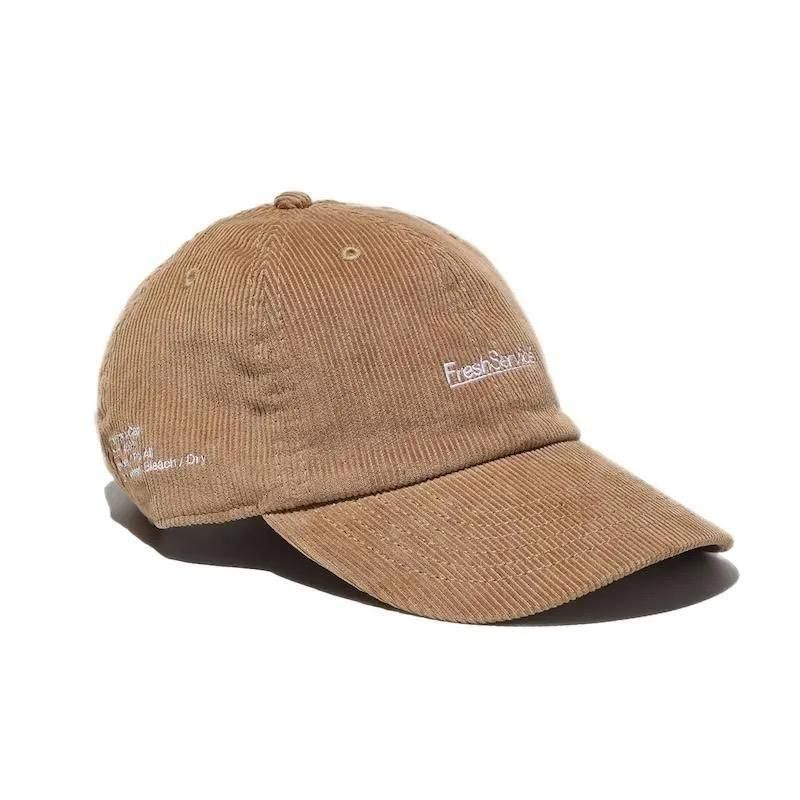 コーデュロイ素材を使用したFreshServiceのコーポレートキャップ。スーべニールアイテムをイメージし、さりげないブランドロゴとスペックの刺繍がアクセントに。アジャスター部分にはクラシックな雰囲気の真鍮製の留め金を採用。