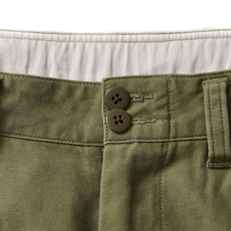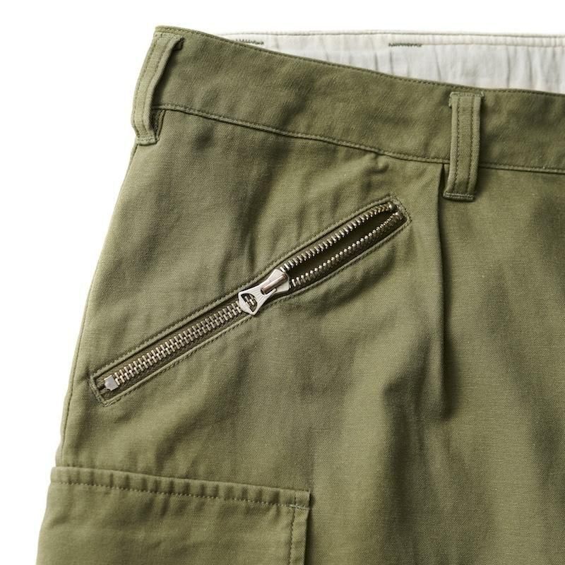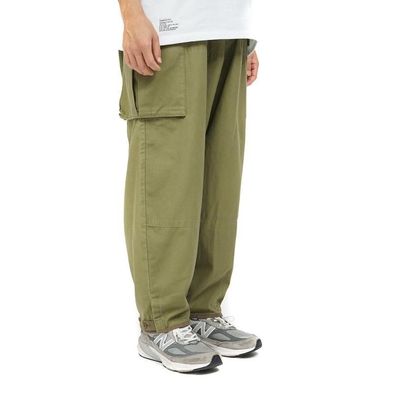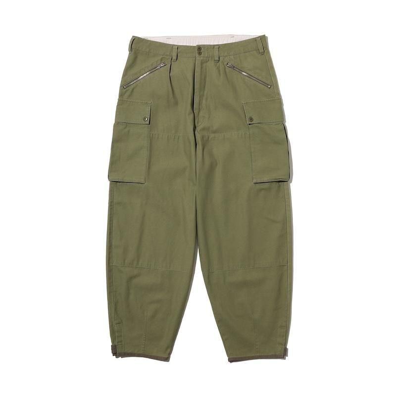 往年のU.SトラウザーをモチーフにFreshServiceらしくモダナイズ。ミリタリーウェアとしてのタフな生地に長く使い込まれた風合いを表現した加工を加え、当時のディテールを再現。ゆったりとしたサイジングで裾はストラップで幅を調整出来る。