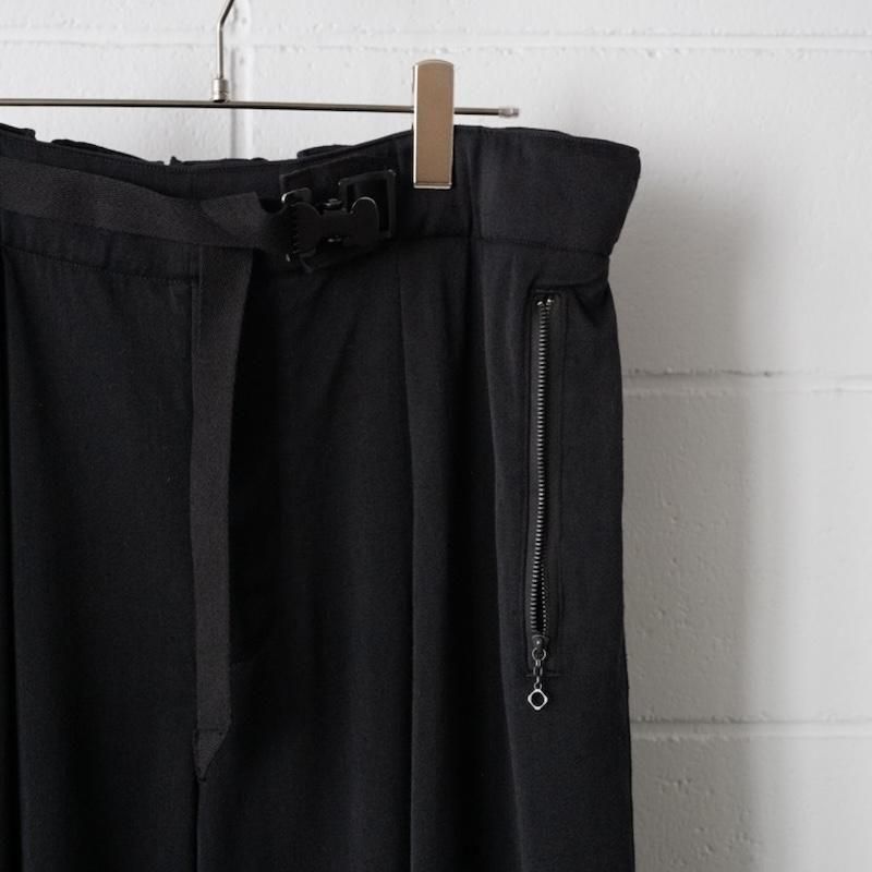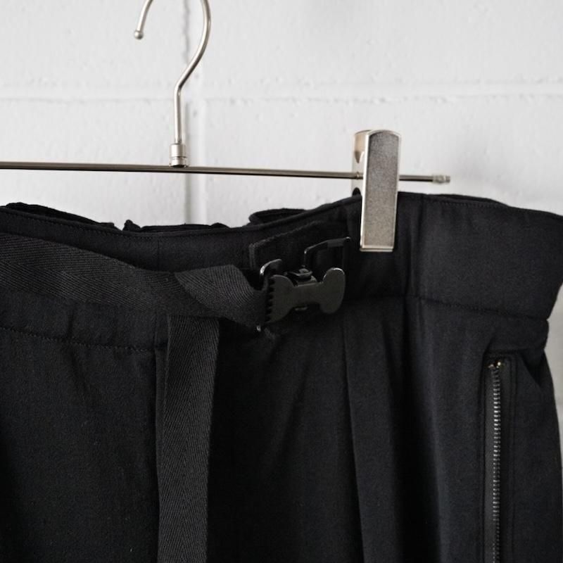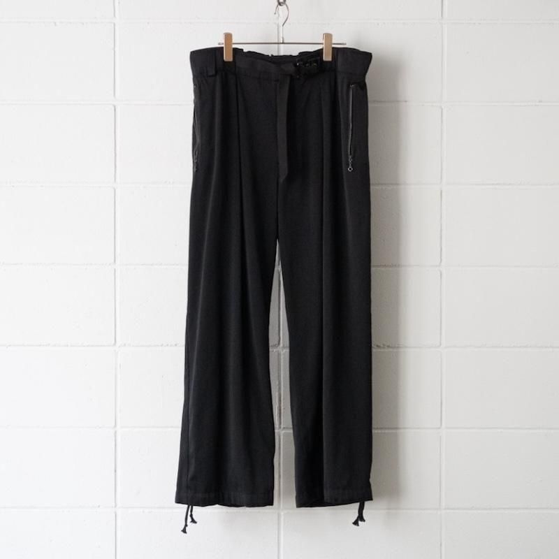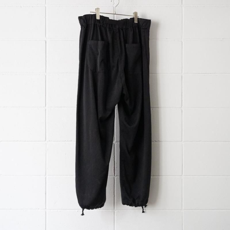 ウールシルク混合の素材を使用したワイドストレートシルエットのイージーパンツになります。