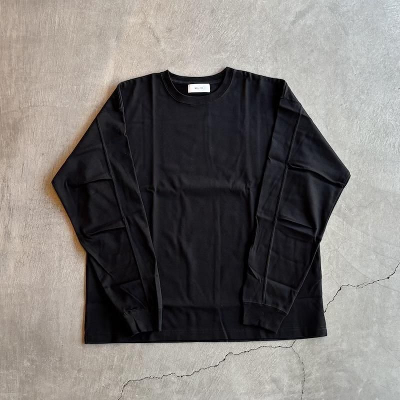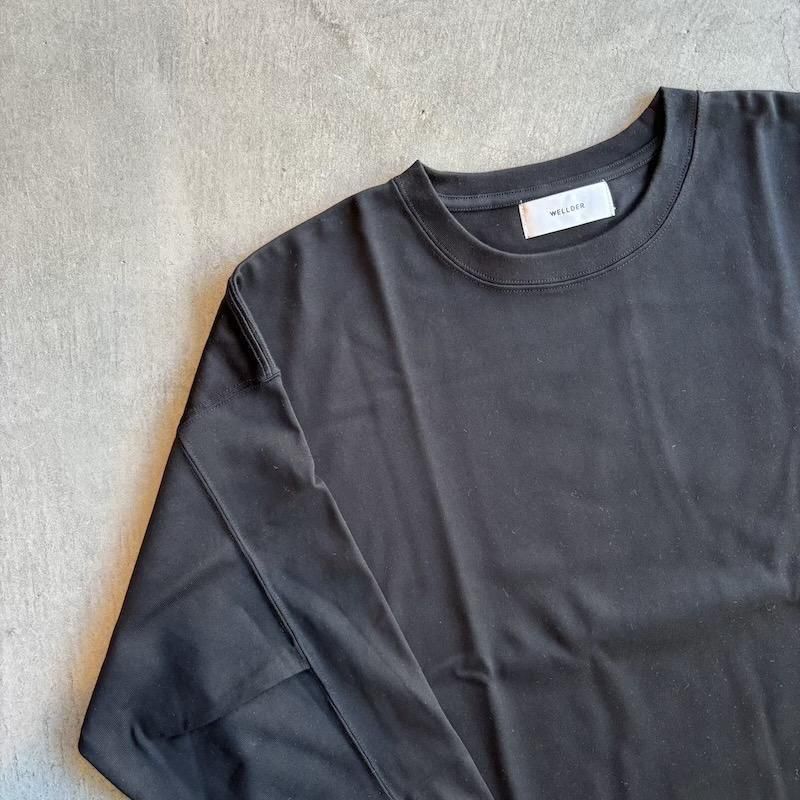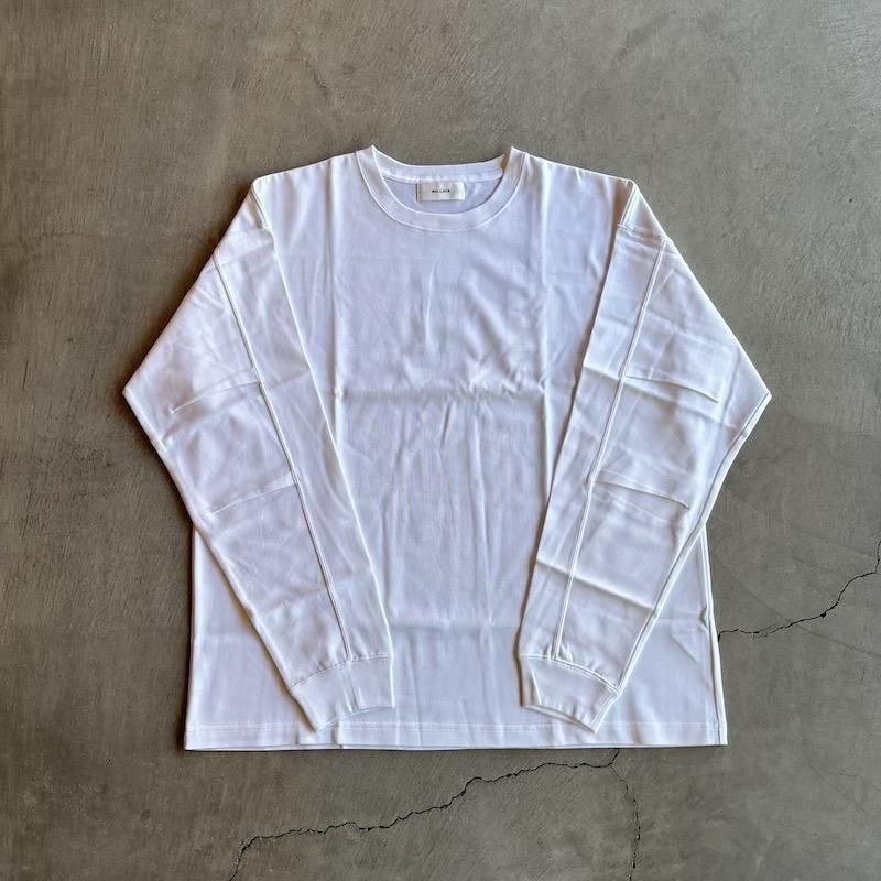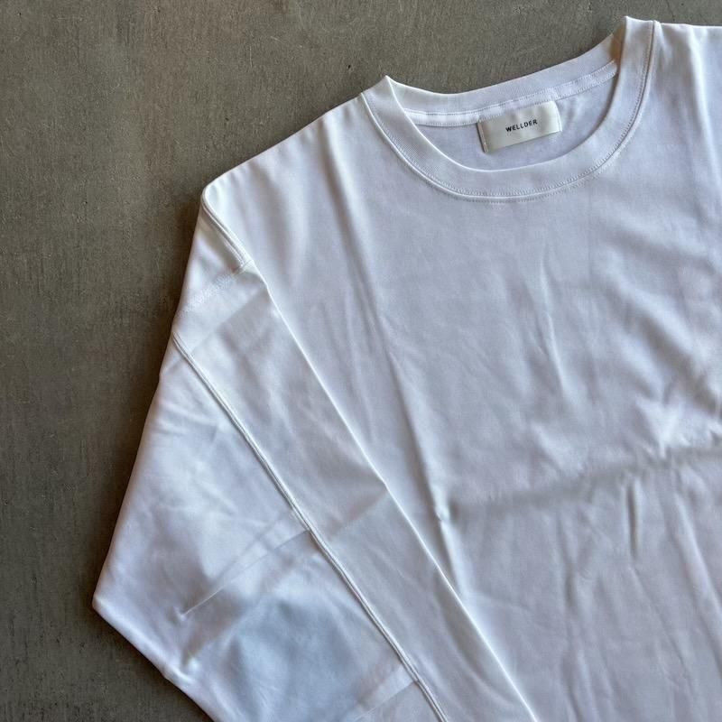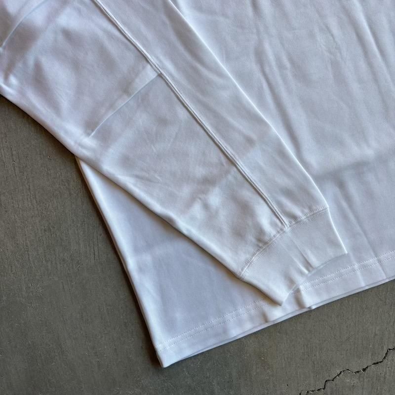 希少価値の高い超長綿であるスーピマコットンを使用した程よい肉感の天竺です。光沢感はもちろん、中肉ながら柔らかさも兼ね備えた風合いが特徴です。プレーンなディテールを用いながら、今の気分で着られるサイジングに仕上げたロングスリーブです。ドロップショルダーで広くとった身幅と袖に施したタックで程よいボリューム感が特徴的で、柔らかで優しい雰囲気を持っています。