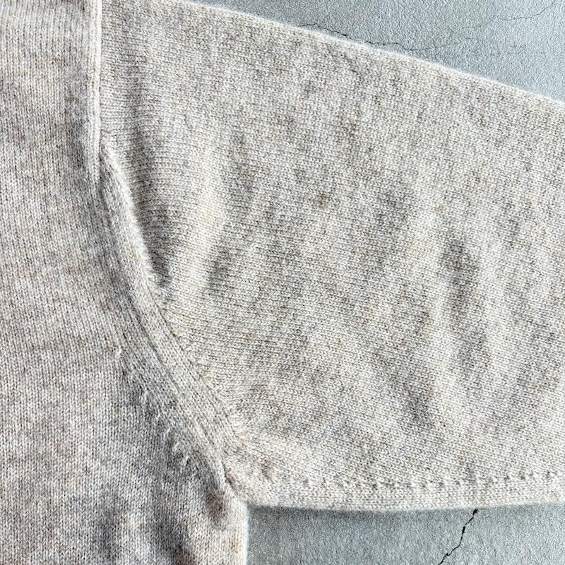 良質なベビーアルパカを絶妙な色差で染め分け、クルミ編みすることで独特の雰囲気に仕上げた商品。膨らみがもたらす暖かさとバルキーな中にソフトな風合いが残る独特の肌触りが特徴です。
