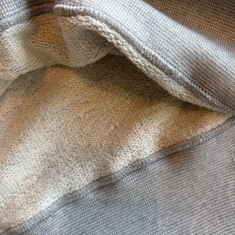和歌山県で編み立てられた1時間に1メートルしか編み立てることができない吊り編み生地。TOP染めの表糸を用い、吊り編みらしいふっくらとしたボリューム感を持たせながら、表糸、裏糸ともにやや細めの糸を用いることで快適に着用できる程よい重量感を追求しました。ワンウォッシュ済み。
