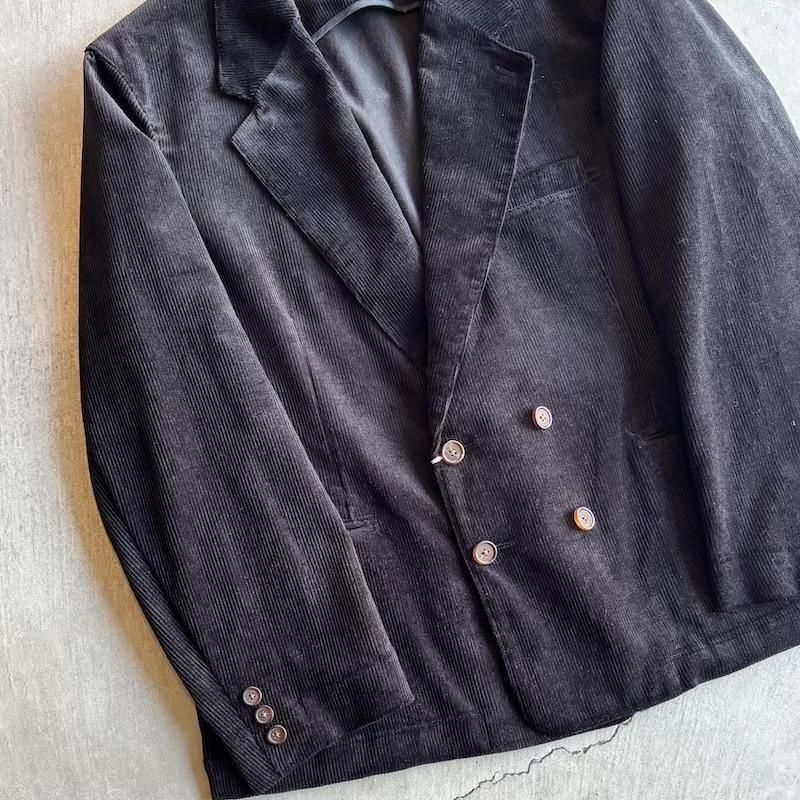 アウター感覚でも着用可能な一枚仕立てのダブルジャケット。身ごろやアームをゆったりととった一方、着丈はややジャストめでワイドなジャケットにも合わせやすいバランスです。裏地を使用せず、仕立ての美しさと機能性の両立を目指し、ハンドステッチやパイピングをはじめとした様々な縫製仕様を使い分けて仕立てました。随所に手作業を盛り込んだ贅沢な仕様です。仕立ては本格ながら気負わず着られるジャケットを目指し、ショルダーラインは自然に馴染むように設計されております。パターンやステッチワーク、倒し方向などを通常のジャケットとは大幅に変更しています。