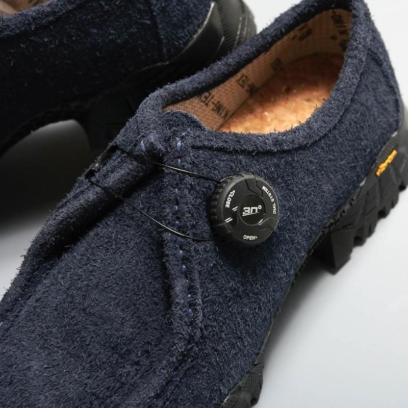 防水透湿のメンブレンのKING-TEXをライナーに搭載した防水性とシューズ内の湿気をそとに逃がす、透湿性が向上したKNOCK2。アッパーには表面に毛羽立ちがあるシャギースエードを使用し、トレイルラン用のvibram社のソールにFREELOCKシステムは健在で、PLAYGROUNDらしい一足へとアップデート。買いやすいプライスにもこだわった一足。