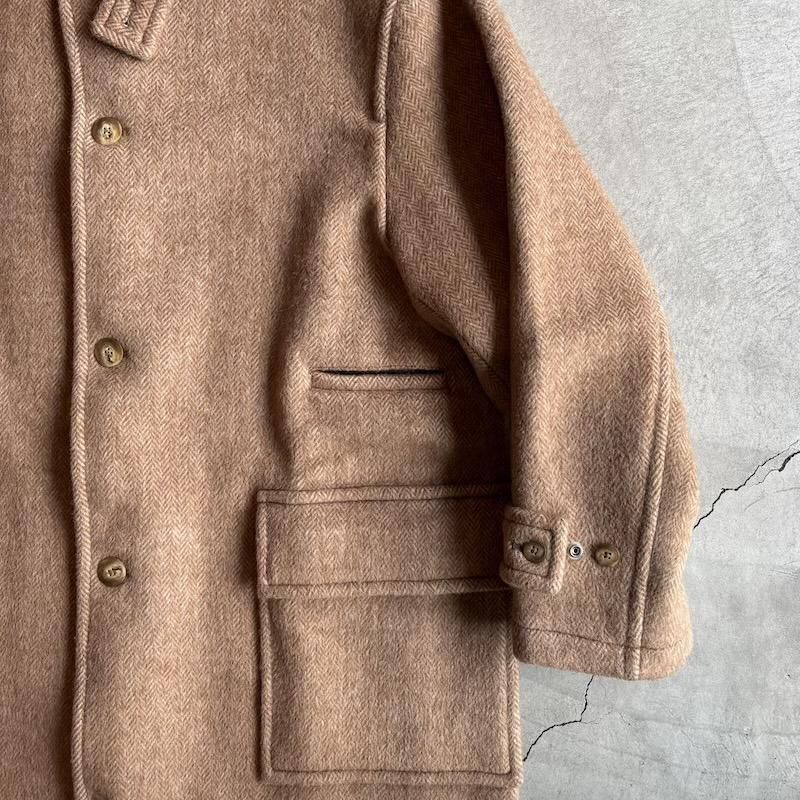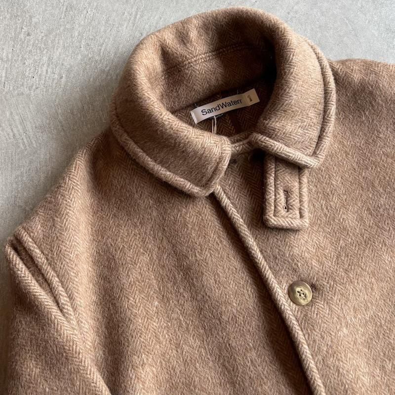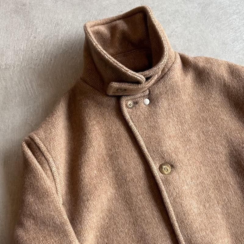 毛足が長く、ボリュームのあるメルトン地を使用しています。肩幅は広く、身幅にゆとりを持たせたシルエットが特徴的。特有な重厚感で保温性にも長けています。チンストラップを搭載してスタンドカラー仕様で着用できます。左前ポケットの上に小さいポケットが付きます。