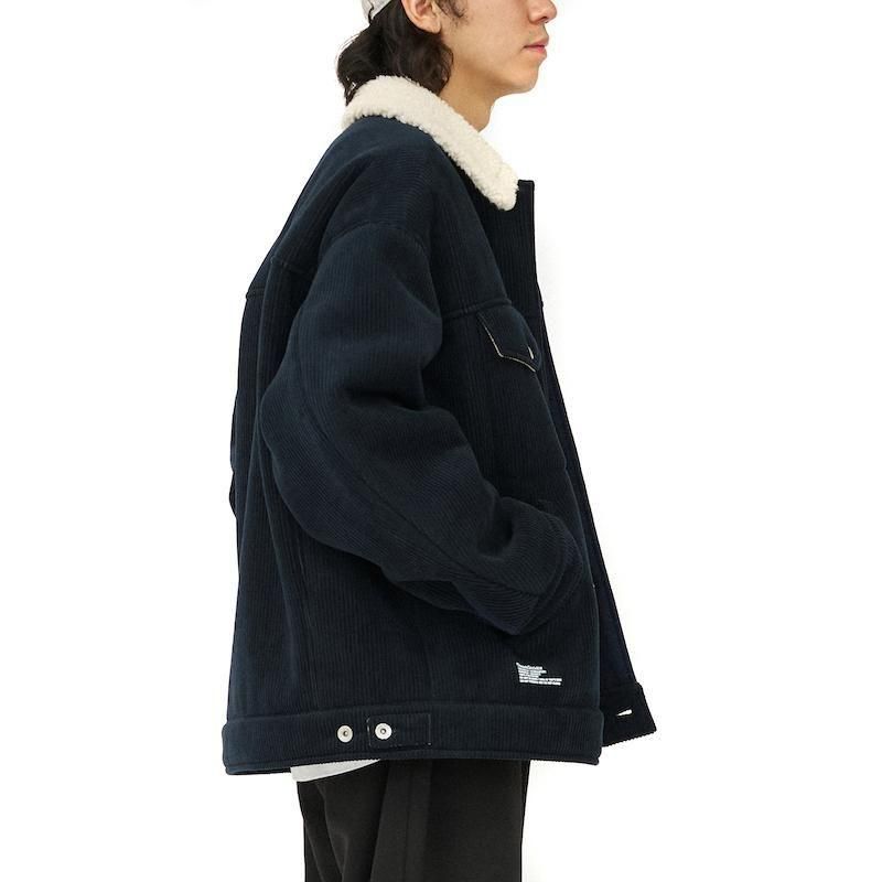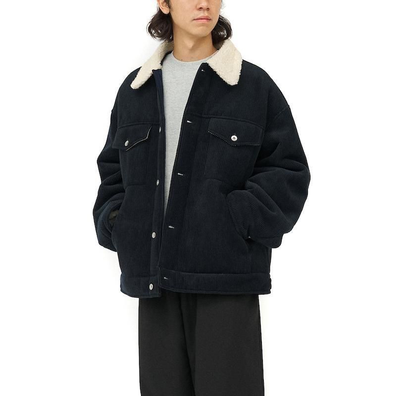 70年代アメリカのワークジャケットをベースに、テックコーデュロイと裏ボアのコンビネーションファブリックで再構築。しっかりとした見た目にふさわしい保温性を兼ね備えながら、見た目に反して軽量というギャップも魅力。ゆとりのあるシルエットと、やや短めの着丈が当時のムードを残しつつも現代のスタイルに自然と馴染むデザインに。フラップポケットやスナップボタンなど、クラシックなディテールも健在。