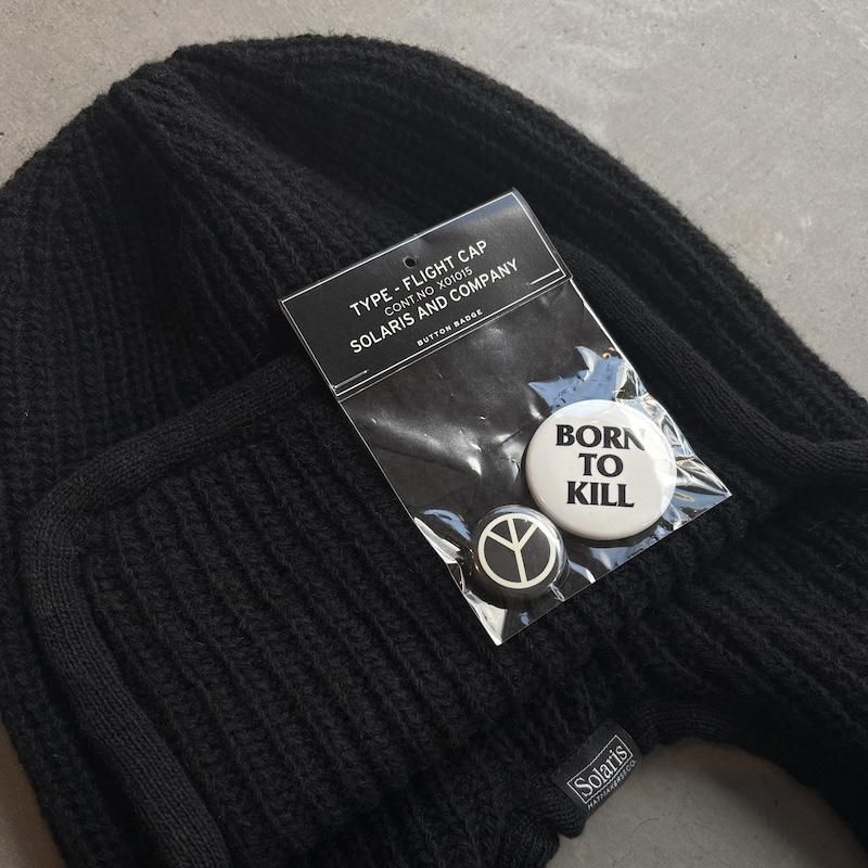 ミリタリーのフライトキャップとバラクラバから着想を得たリブ編みのニットフライトキャップ。