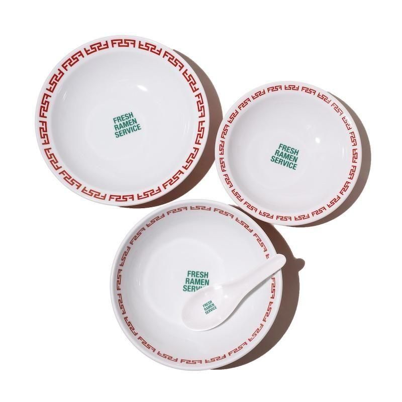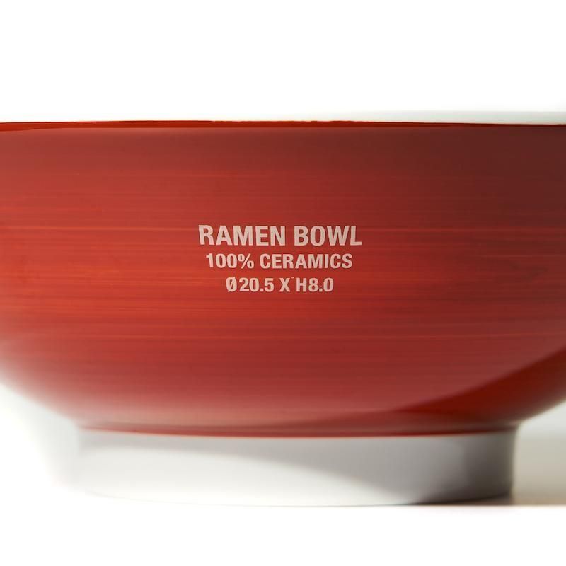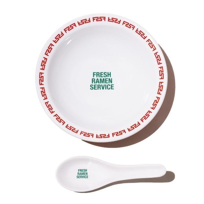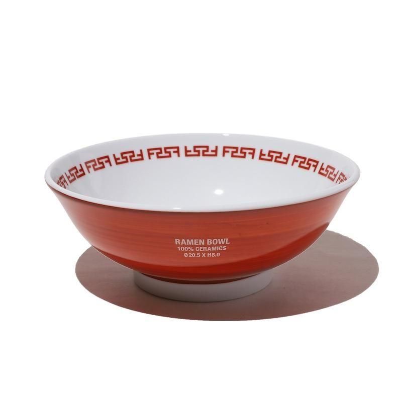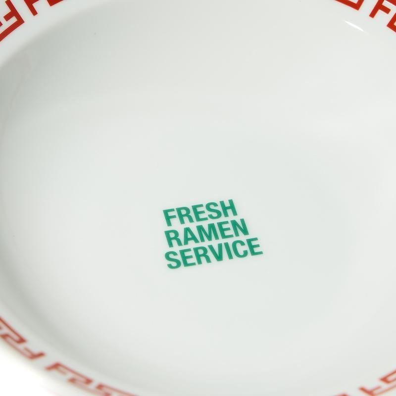 クラシックな雷文を縁に配した、美濃焼のラーメンボウル。手作業で仕上げられているため、釉薬のムラや刷毛跡、色合いの個体差が一点一点に異なる表情を与え、器としての味わいを深めている。使うたびに愛着が増す、そんな佇まいに。外側はヴィヴィッドなレッド、内側には「FRESH RAMEN SERVICE」のロゴをあしらい、懐かしさとユニークさが同居する。サイズはφ20.5cm×8cm。