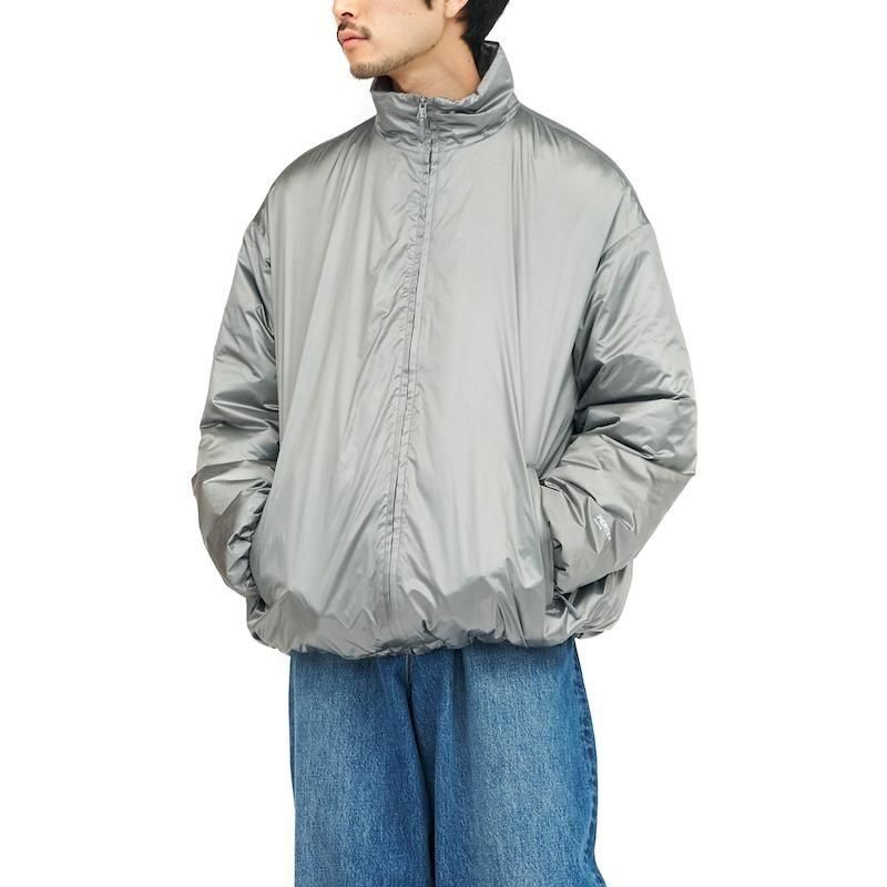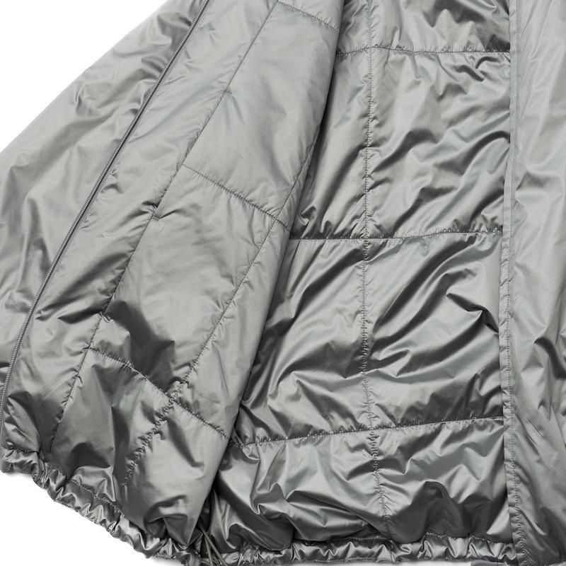 PERTEX® QUANTUMを使用したジップアップスタンドカラーブルゾン。往年のフライトジャケットを彷彿させるシルバーカラーが特徴。防風性、通気性、軽量性を兼ね備えた機能的な一着。PRIMALOFT®︎中綿を搭載しており、軽さを保ちながらもしっかりとした保温性を提供。ゆったりとしたリラックスフィットで、レイヤリングしやすく、アウトドアからタウンユースまで幅広く活躍。