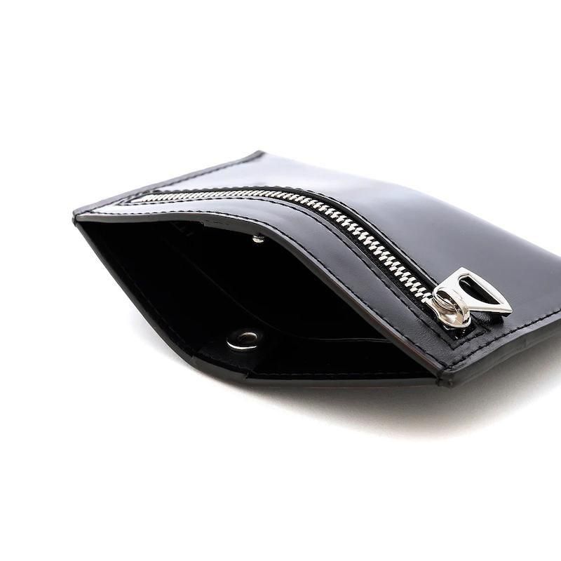 最小・最薄のミニ財布ながら、そのコンパクトさに驚くほどの機能を備えているミニ財布、「CRISTY SMART CARD WLT(クリスティスマートカードウォレット)」。通常、ファスナーはシルバーカラーを採用していますが、"BLACK COLLECTION"では、ブラックニッケルを使用し、洗練された重厚感を演出しています。スナップボタンで簡単に開閉でき、名刺入れとしても活躍するシンプルかつ洗練されたデザイン。軽量なのでポケットやバッグに入れてもかさばりません。外側には、小銭をすっきりと整理できるファスナーポケットを搭載。メインポケットには仕切りがあり、お札とカードをしっかり分けて収納できます。お札は2つ折りで、カードは約8枚をスマートに収納可能。コンパクトながらも、優れた収納力を誇ります。