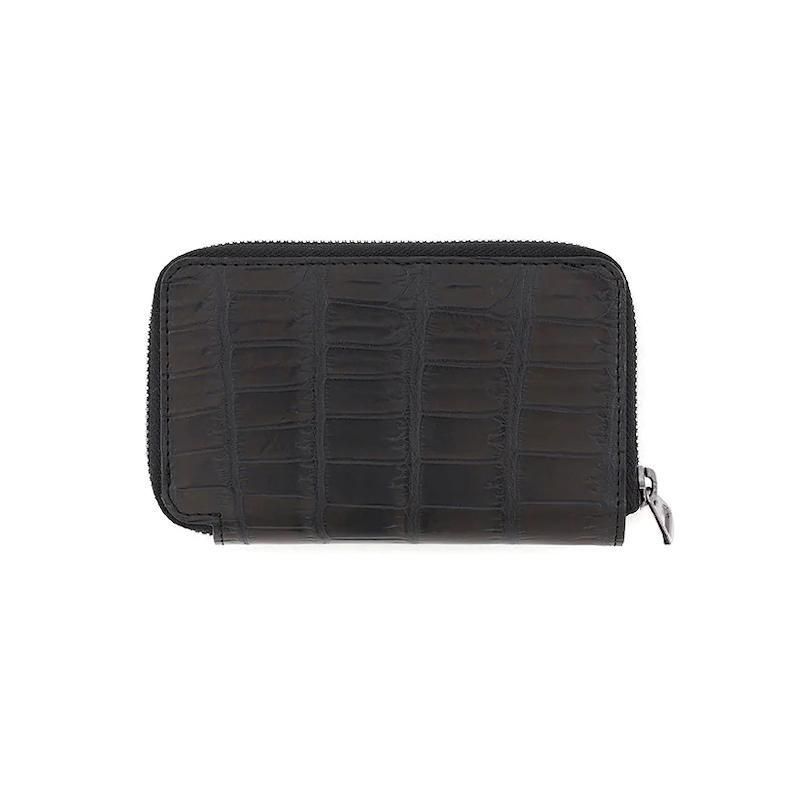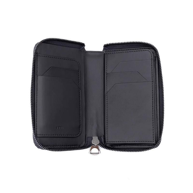 定番で展開しているスマートフォンサイズのミディアム財布、CRISTY SMART MID WLT(クリスティスマートミッドウォレット)。 通常、ファスナーはシルバーカラーを採用していますが、"BLACK COLLECTION"では、ブラックニッケルを使用し、洗練された重厚感を演出しています。二つ折りでラウンドファスナー仕様となっており、見た目に反して驚くほどの収納力を誇ります。ボックス型のコインポケットや、11枚分入るカードポケット、さらに2つのフリーポケットなどが備わっています。容量は長財布に比べると少ないものの、小銭やお札、カードをしっかりと整理して収納することができます。特に領収書の整理を欠かせない方にとっては、おすすめのアイテムです。