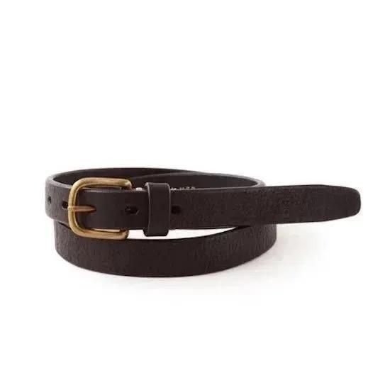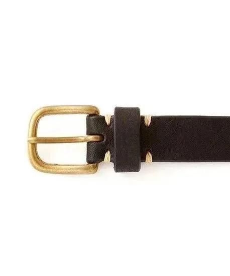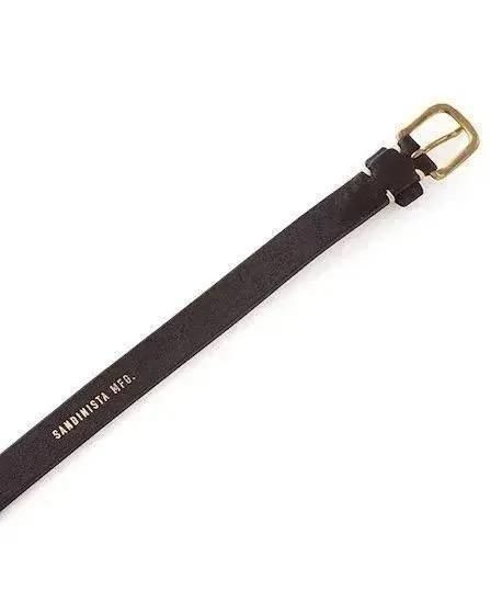 上質で厚手の国産牛革を使用した、通常より細めのベルトです。化学物質を一切使わず、植物性のタンニンのみを使用した革を使用しています。また、革にオイルを染み込ませ、表面は手染めしていますので、独特の風合いと色感が出ています。職人が1個1個丁寧にコバを磨いていますので、上質感がとても出ているベルトです。