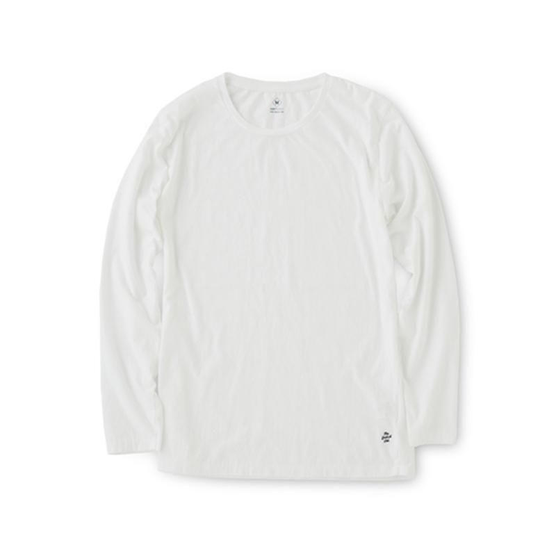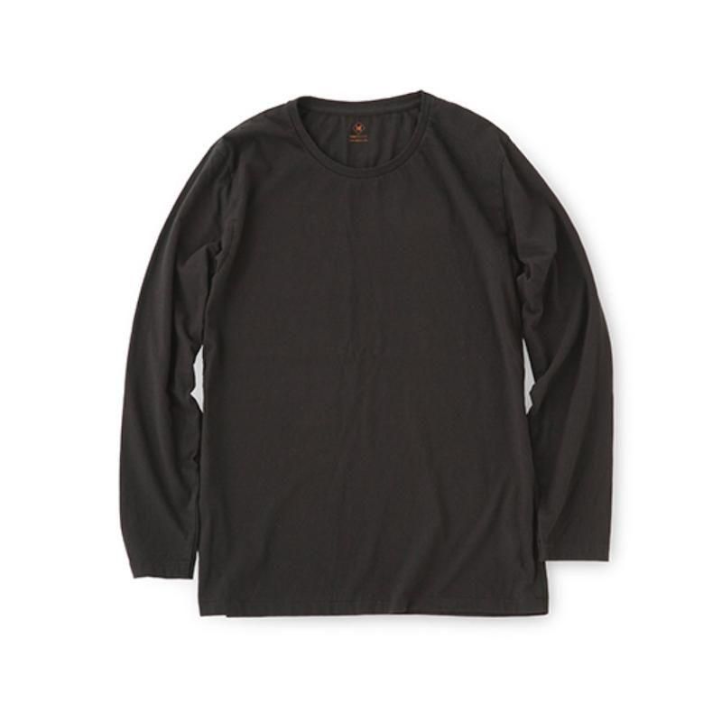 3層のオリジナルブレンドコットンを使用し、日本で縫製した長袖クルーネックTシャツです。着心地は抜群で、まさにデイリーTシャツです。製品後に染めてますので、独特の風合いが出ています。また、後染め後にタンブラー乾燥を施していますので、伸び縮みも少ないです。