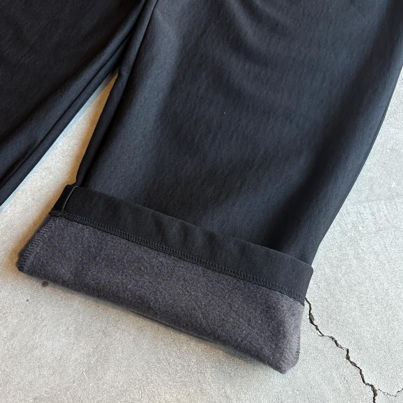 発熱吸湿の素材を用いたテックパンツ。裏地にはキュプラを起毛し使用しているため肌あたりも柔らかく発熱しながらもムレにくく、不快感のない履き心地となっております。スウェットやジャージよりも高級感があり大人の方もお使いいただきやすい表情となっております。