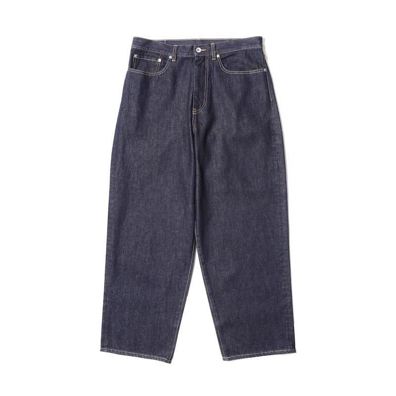 スタンダードなファイブポケットジーンズをFreshServiceらしくアップデート。履き込むほどに表情を深める13.5ozのヘビーオンスデニムを採用し、腰回りにボリュームを持たせ、裾に向かって緩やかにテーパードしたワイドなシルエットが特徴。同素材で展開されるCORPORATE DENIM ENGINEER JACKETとのセットアップもお勧め。